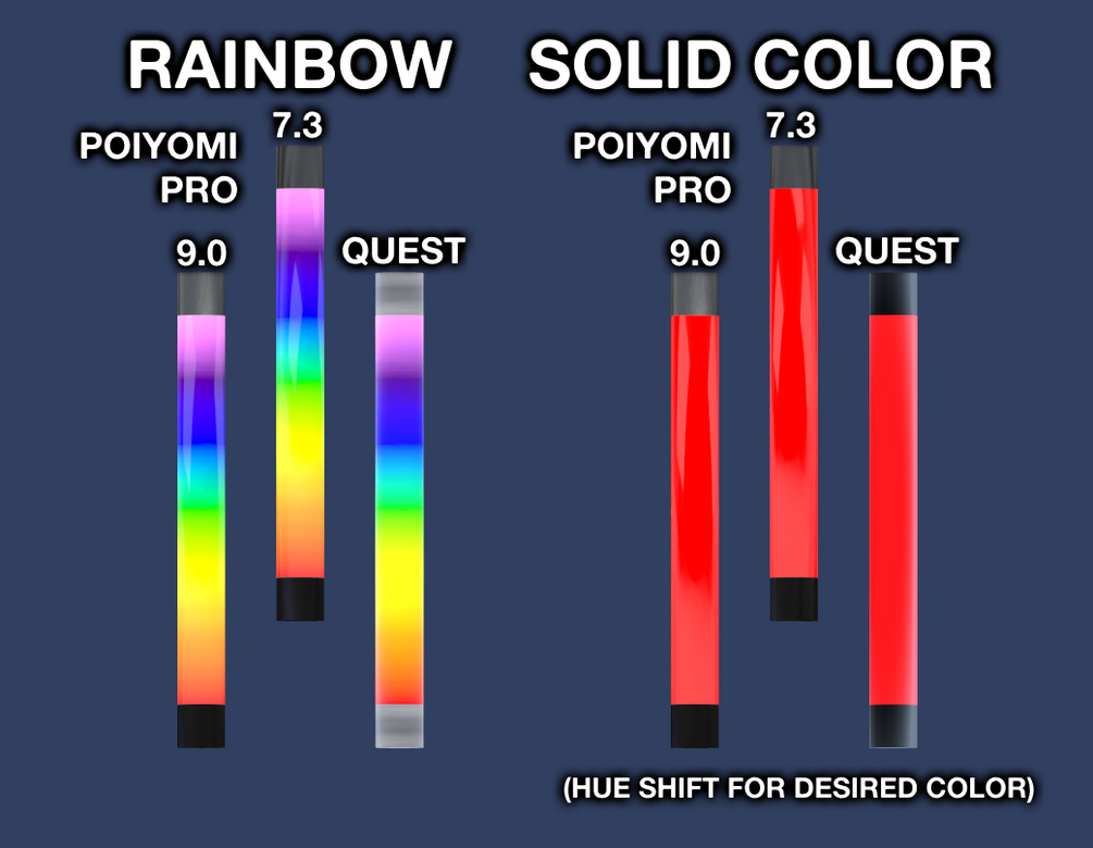 - Poiyomi Pro 7.3, 9.0, and Quest Materials (PC Materials support AudioLink)
